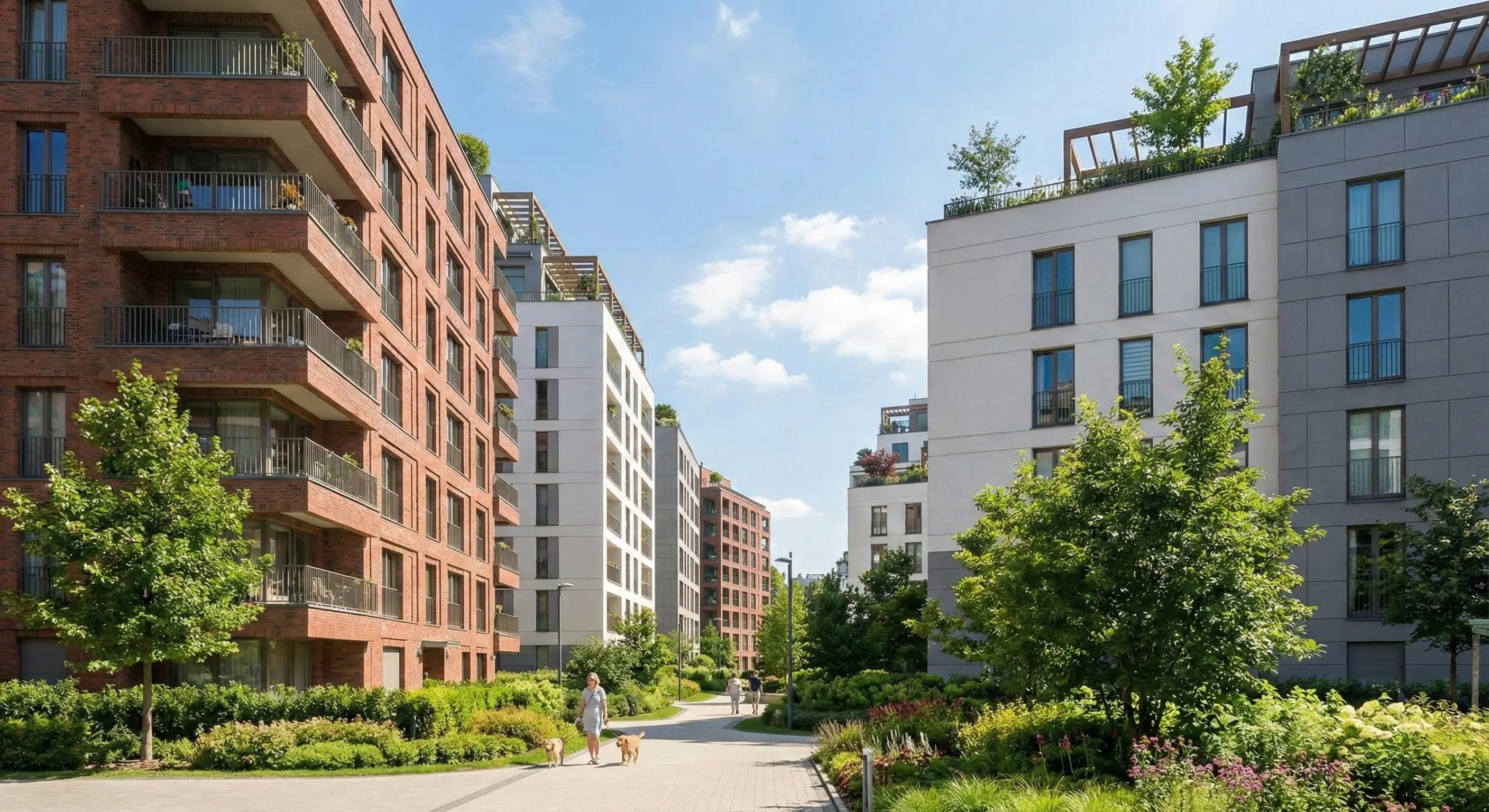 Tvorba 3D vizualizací pro developera. Komplex bytových domů se střešními terasami a balkóny v Rakovníku.
