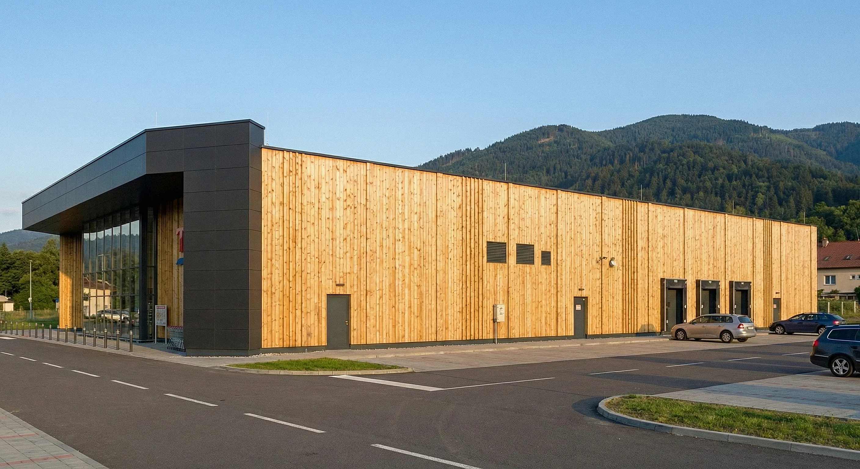 3D vizualizace pro připravovaný projekt ve spolupráci s architekty. TESCO Vrchlabí. Základní myšlenkou byly přírodní materiály a zapadnutí obchodu do krajiny. To si vzali na starost architekti. Na nás bylo přenést myšlenku do obrazu.
